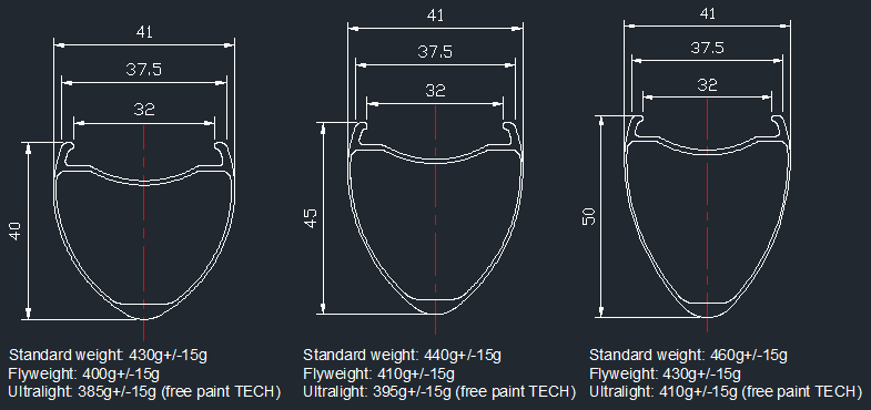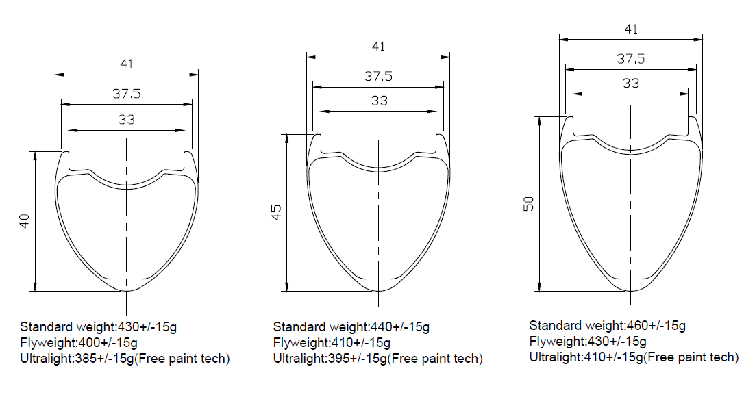 Currently we have update the gravel rim to asymmetrical 30mm internal width, hooked 32mm internal width, hookless 33mm internal width. Using T800/T1000 carbon fiber material, the UD (unidirectional carbon cloth) balances rigidity and fatigue resistance, thereby enhancing the impact resistance of the rim. Meanwhile, by using free paint tech to reduce the rim weight.